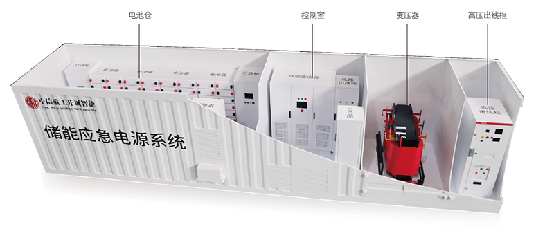 固定式儲能應急電源系統是将锂電池系統、空調系統、消防系統、配電系統、監控系統、變壓器、變流器、高壓出線櫃集中裝在一個标準的集裝箱體内,具有高集成度、大容量、高可靠性、可快速投入使用等優點。當礦井雙回路停電時,固定式儲能應急電源系統可作爲備用電源快速投入使用,保障礦井通風、提升機等重要設備正常運行,提高煤礦生産的安全性。