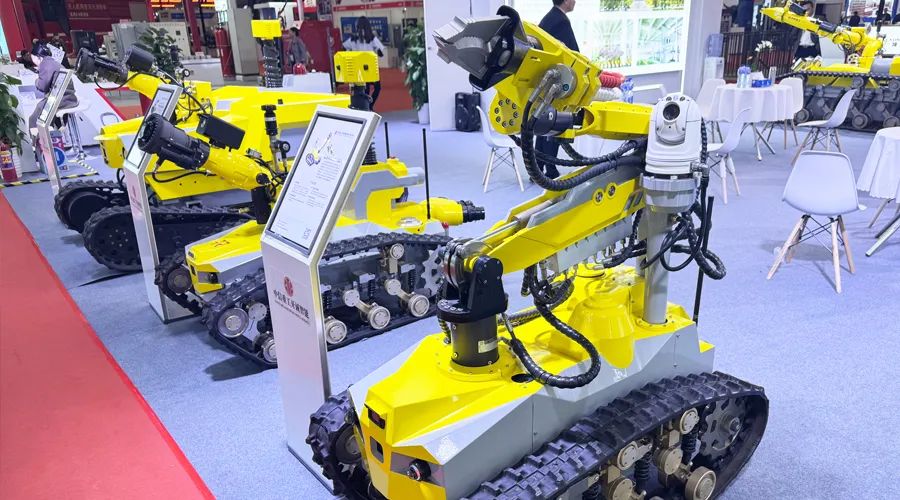 展台前,多款機器人整齊排列,雖造型各異卻科技感十足。這些機器人融入了人工智能、機械自動化、熱成像探測、耐高溫防護等一系列新技術,整體智能化水平進一步提升。